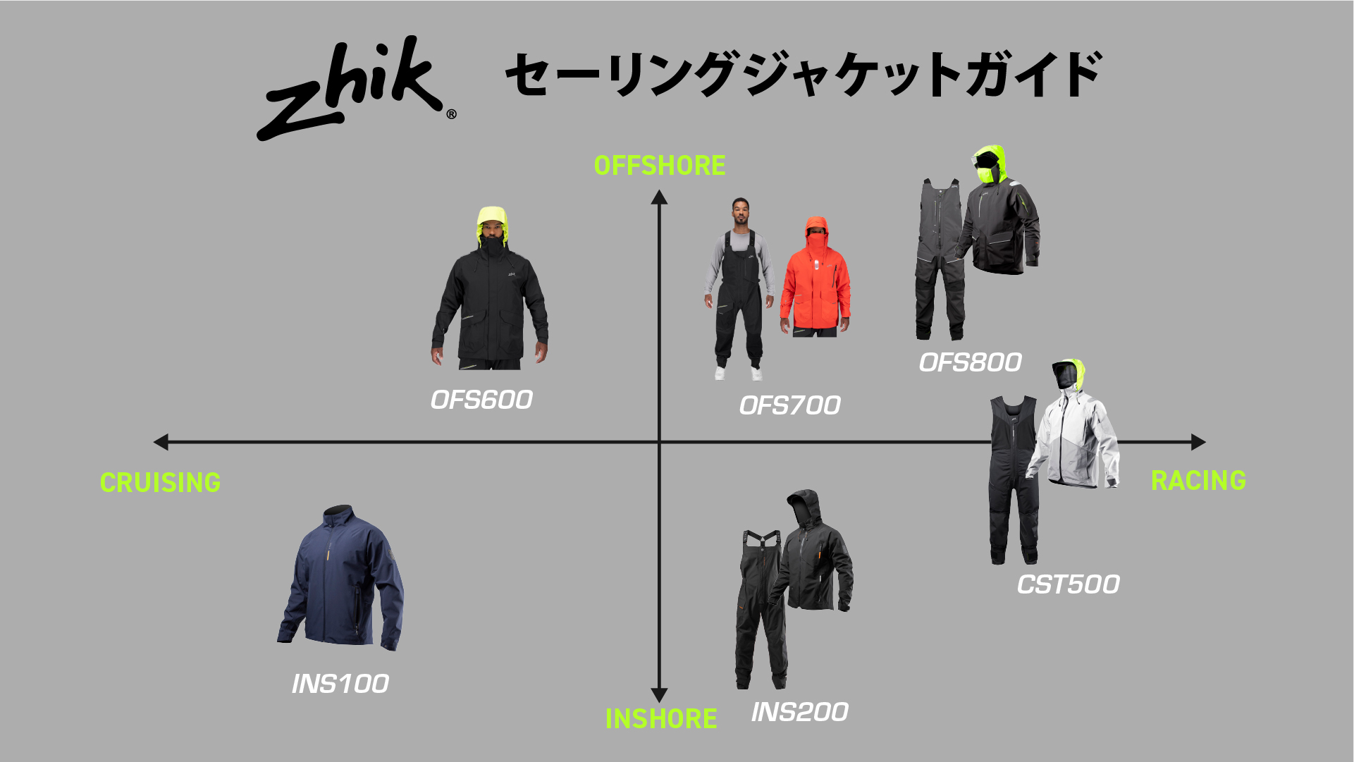 Zhikの現在のセーリングジャケットのラインナップは以下のようになっています。