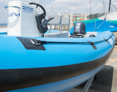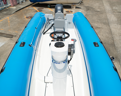 手頃なサイズ感ながら圧倒的な波浪走破性をもつ5.8Cに対して幅広で静止時の安定性に優れる5.8Rは、ジュニアやユース、大学のクラブやオリンピッククラスのサポートからレース運営など何でもこなす、世界のスタンダードとなっているサポートボートです。